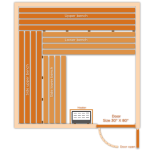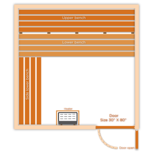 Large size sauna bath (specially for gym purposes) comes with all features that sauna should be. Compare to its size, Pretty enough for six to nine people at one go. It has double bench design (double upper bench and double lower bench too) which gives essential siting space for users.