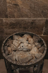 After the sauna has arrived at the ideal temperature, step inside and go through between 5-15 minutes simply absorbing the dry heat only. Keep things dry . which means don’t put water on the saunas lava rocks.